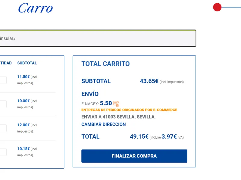 No te preocupes por este paso, el sistema elegirá automáticamente la empresa de trasnporte en función del destino del pedido que estás realizando. Solo tienes que marcar la opción “He leído y acepto las condiciones generales de venta.”
