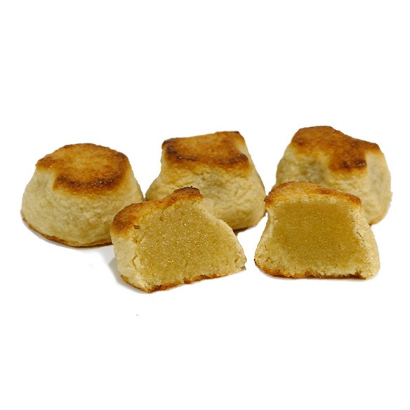 Ingredientes: Almendras, azúcar, crema de batata, huevo, harina de trigo, glucosa y esencias de almendra amarga.